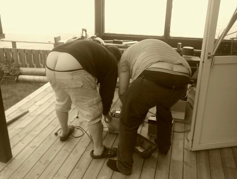 Se här – två runda gossar från Torsbyfjärd ansluter Nystugan till egen strömförsörjning. Efter lyckad anslutning ägnas dagen åt att ifrågasätta 5:2 dieten och motion.